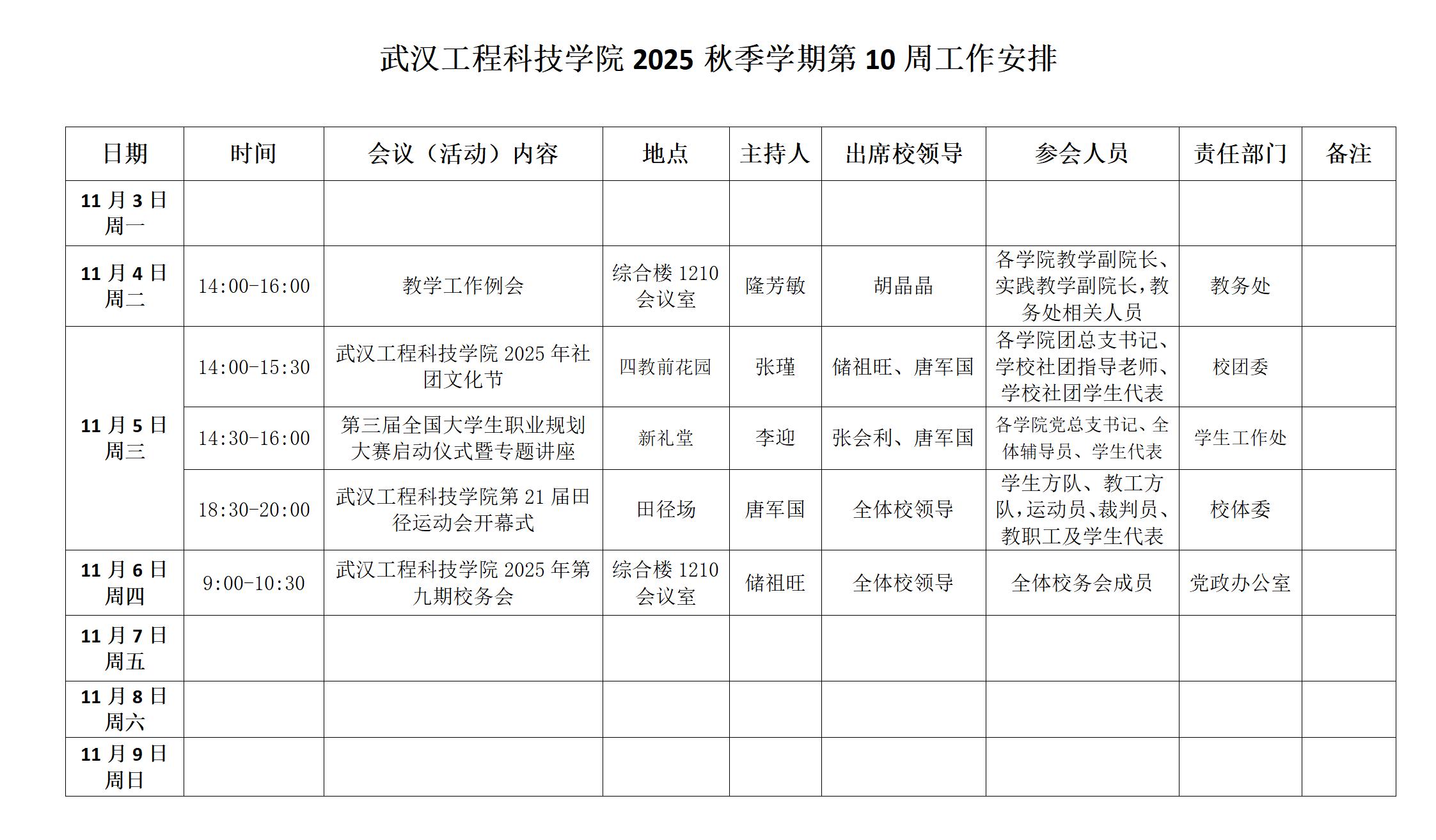 学校2025-2026第一学期第10周工作安排